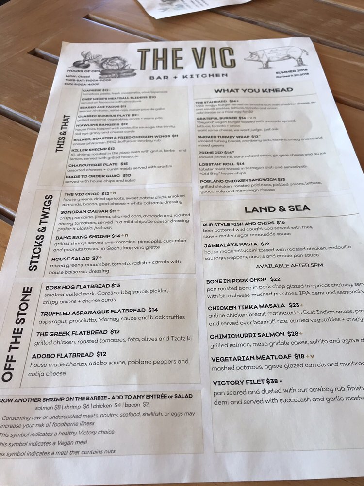 The Vic Bar + Kitchen is a trendy and upscale New American restaurant located in Verrado, Buckeye, Arizona. Offering a variety of vegan options and limited vegetarian options, this restaurant is perfect for those with dietary preferences. With amenities such as outdoor seating, a full bar, TV, and even drive-thru service, The Vic Bar + Kitchen aims to cater to a diverse range of customers. The menu features a mix of classic American dishes with a modern twist, showcasing the chef's creativity and attention to flavor. Whether you're looking to grab a quick bite during happy hour or enjoy a leisurely dinner with friends, The Vic Bar + Kitchen provides a welcoming atmosphere and delicious food to match. Don't miss out on trying their signature dishes and experiencing the vibrant dining experience this restaurant has to offer.